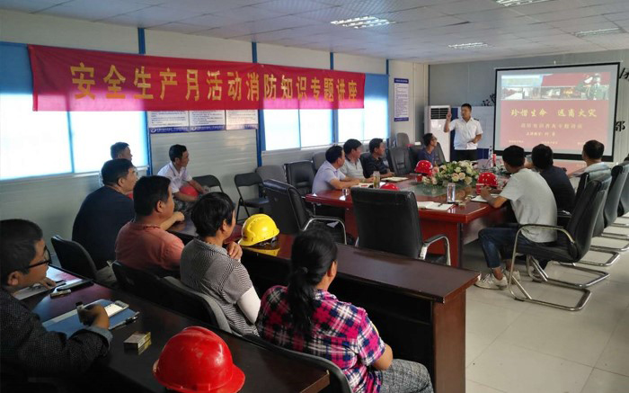 为深入开展2018年度“安全生产月”活动,进一步增强项目人员消防安全意识和消防应急反应能力,2018年6月20日,金阳环保工程项目部组织召开消防安全知识专题讲座和消防安全应急演练。