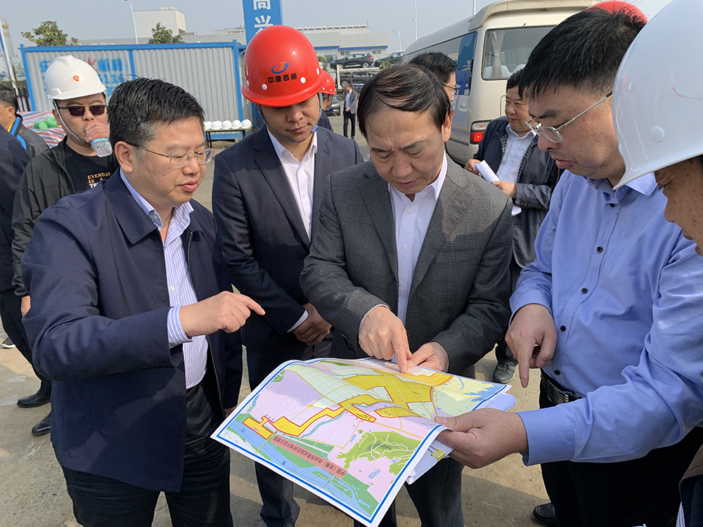 2020年10月17日上午,在蚌埠市委书记汪莹纯的带领下,市委市政府和市直部门主要负责同志实地考察大富科技(蚌埠)研发总部项目。大富科技经理杨紫山、中建西部总经理王越、多金集团副总经理童飞等人陪同,并对项目设计、规划、工程进展等问题做了详细的汇报。