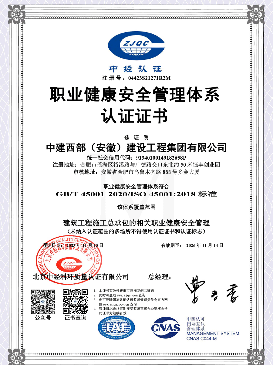 职业健康安全管理体系认证