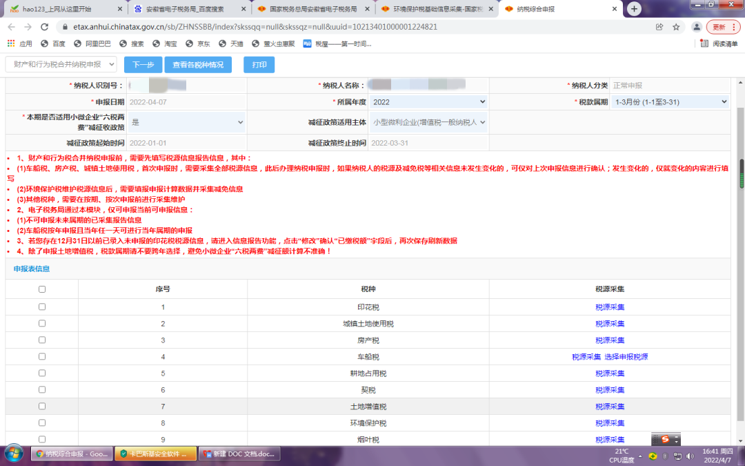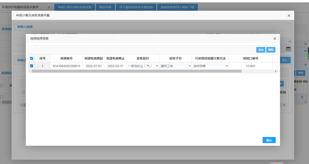 点击环境保护税“税源采集”按钮,进入信息采集界面。