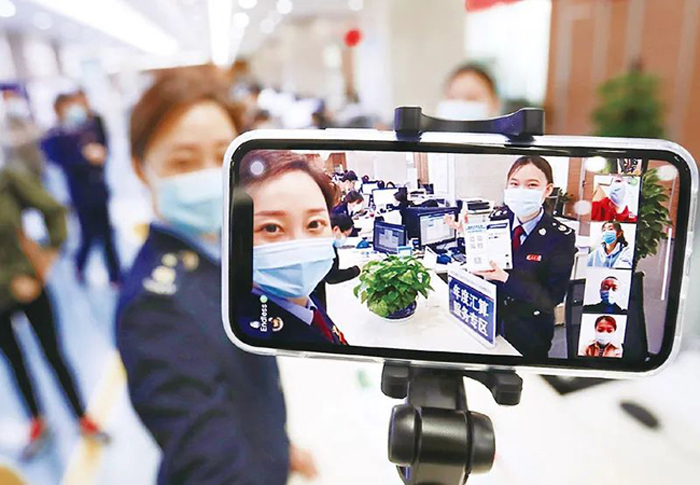 税务部门持续创新提升税费政策服务效能,在连续第10年开展的“便民办税春风行动”中,推出一系列减环节、减资料、减时间、减成本的创新服务举措。图为2023年4月24日,国家税务总局西安国家民用航天产业基地税务局干部化身“主播”,向纳税人提供个性化政策宣讲解读及办税指引。 国家税务总局供图 李鑫、陈显信/摄