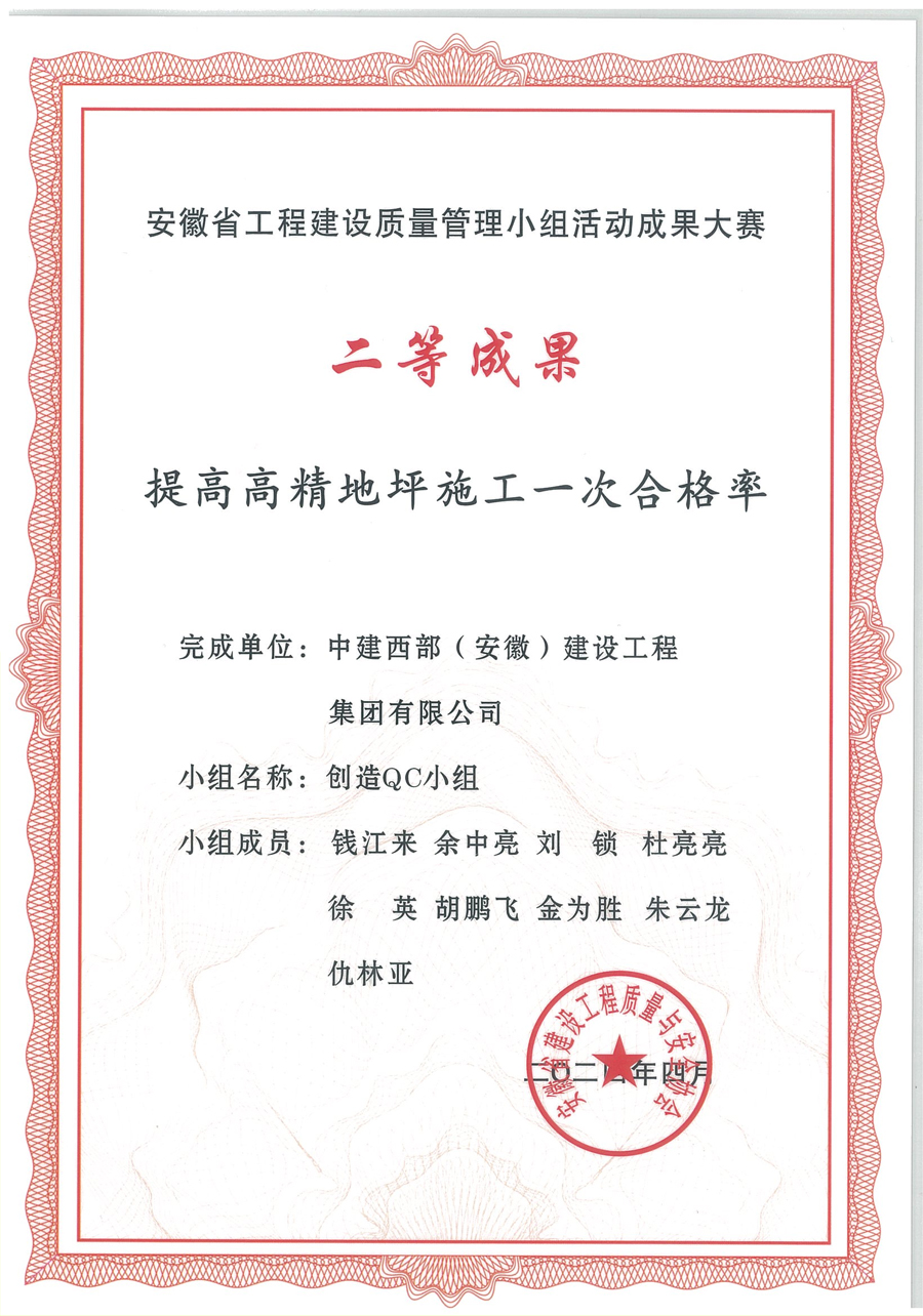 2024年QC小组二等奖《提高高精地坪施工一次合格率》